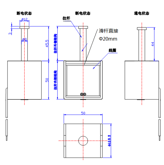 產(chǎn)品尺寸:50*50*44  (mm)具體尺寸如下圖: