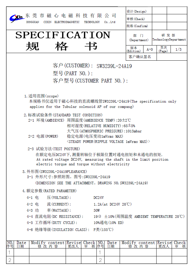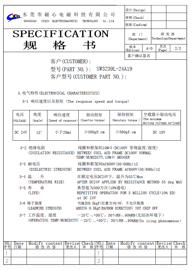 SW3239旋轉(zhuǎn)電磁鐵的規(guī)格書(shū)如下: