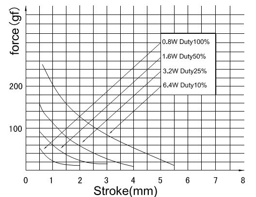 2,功率:根據客戶的通電時間和需要的力量而定:典型參數為3mm行程200克力