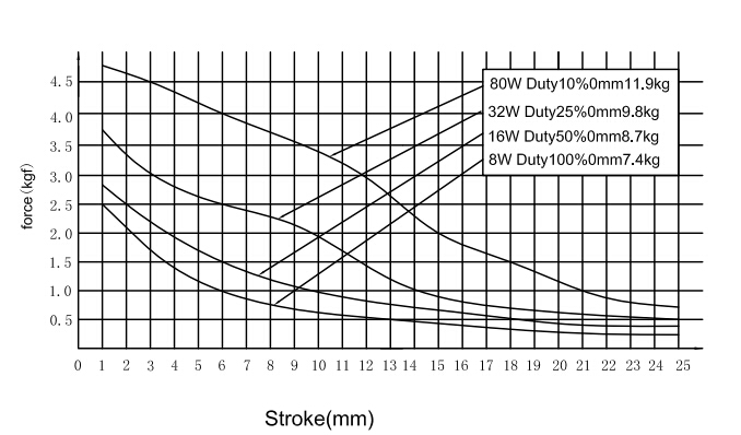 縱向:代表電磁鐵在對應行程時的力量   單位為克(g