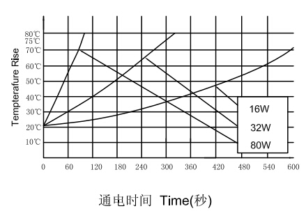 三、U1564推拉電磁鐵通電時間和溫升對應的曲線圖:
